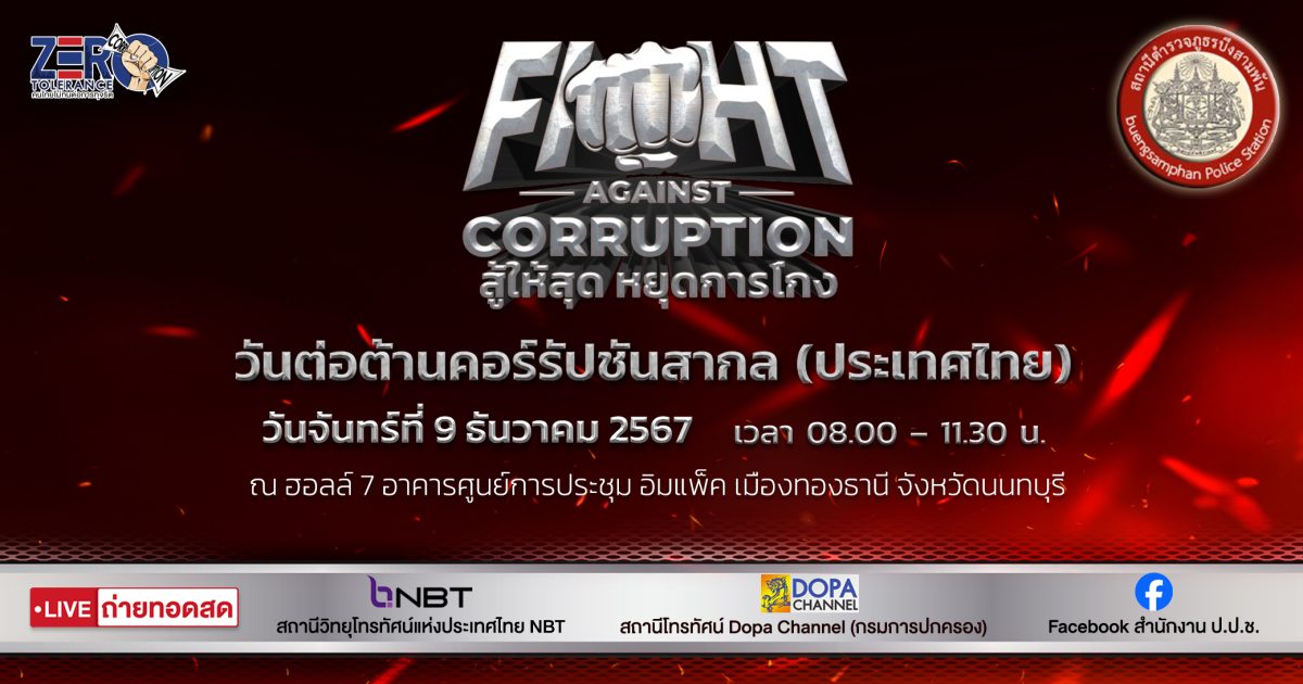 รัฐบาล ร่วมกับสำนักงาน ป.ป.ช. สำนักงาน ป.ป.ท. องค์กรต่อต้านคอร์รัปขัน (ประเทศไทย)ภาคีเครือช่ายทุกภาคส่วน กำหนดจัดงานวันต่อต่อต้านคอร์รัปชันสากล (ประเทศไทย) ในวันจันทร์ที่ 9 ธันวาคม 2567