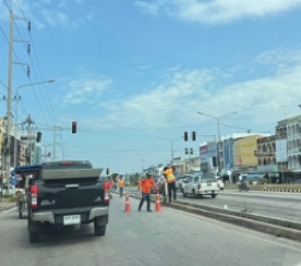 ภายใต้อำนวยการ พ.ต.อ.เกรียงไกร รินทพล ผกก.สภ.บึงสามพัน พ.ต.ท.เสรีวริส ปริญญากร รอง.ผกก.ป.สภ.บึงสามพัน พ.ต.ท.สมยศ พรหมบุตร สวป.สภ.บึงสามพัน พ.ต.ต.นรินทร์ ยายอด สวป.ชส.สภ.บึงสามพัน สภ.บึงสามพัน พ.ต.ท.สมยศ พรหมบุตร สวป.สภ.บึงสามพัน ผู้ปฏิบัติ ร.ต.อ.วัชระ ธูปทอง รอง.สวป.สภ.บึงสามพัน พร้อมสายตรวจจราจร หมวดการทางบึงสามพัน ปรับปรุงถนนตีเส้นแบ่ง ช่องทางการจราจร ถนนทางหลวงหมายเลขที่ 21 บริเวณสี่แยกซับสมอทอด